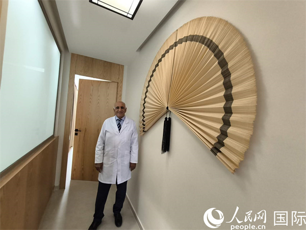 人民網(wǎng)卡薩布蘭卡2月20日電 (記者黃培昭)摩洛哥第一大城市卡薩布蘭卡的午后,陽光灑在白色的建筑上,海風(fēng)裹挾著大西洋的氣息撲面而來。在這座以現(xiàn)代與傳統(tǒng)交織并存而聞名的城市,人民網(wǎng)記者來到市中心馬阿里夫區(qū)馬阿里夫廣場。車水馬龍的熱鬧廣場一角,翠綠挺拔的椰子樹掩映中,有一幢乳白色的六層樓建筑,建筑的三層,是一家與眾不同的診所。推開古樸的木門,映入眼簾的不是冰冷的醫(yī)療器械,而是古色古香的木質(zhì)家具,墻上掛著中國書法、中國扇子和中國山水畫,空氣中彌漫著淡淡的艾草香氣。這里便是穆罕默德·哈利勒博士創(chuàng)辦的中醫(yī)診所——“中國傳統(tǒng)醫(yī)學(xué)中心”,它也是摩洛哥第一家中醫(yī)醫(yī)療機(jī)構(gòu)。