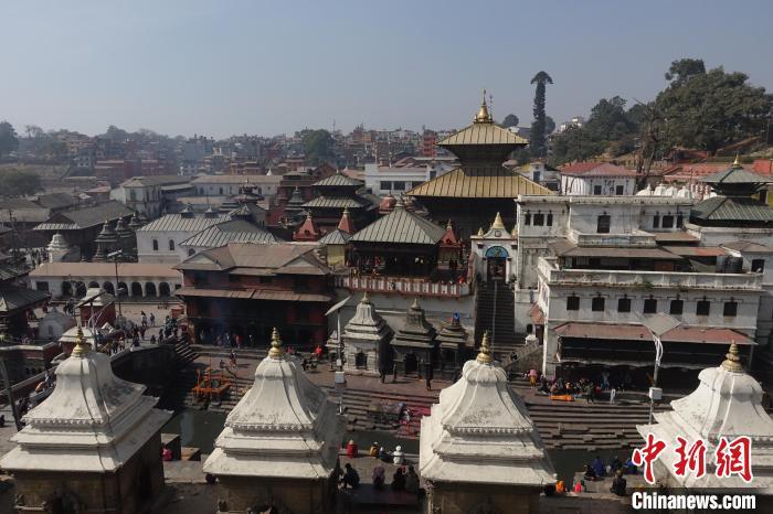 當(dāng)?shù)貢r間2月4日,尼泊爾加德滿都巴格馬蒂河畔的帕斯帕提那神廟(俗稱“燒尸廟”)。 中新社記者 崔楠 攝
