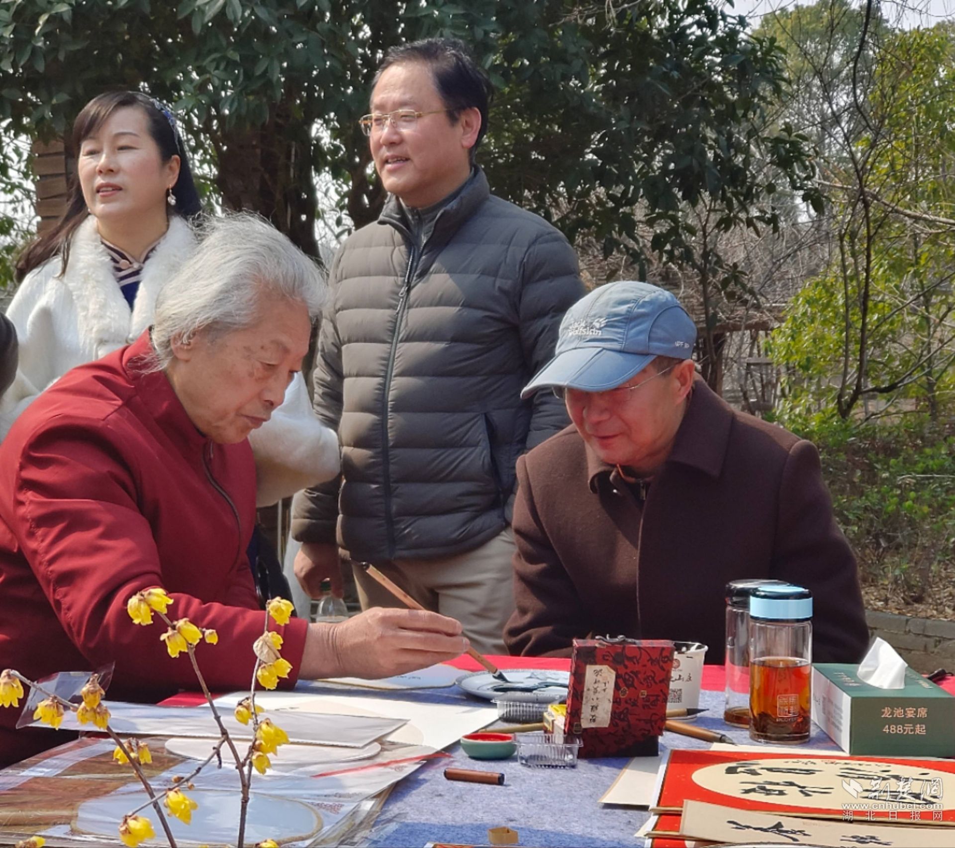 在賞梅之余,游客們還能欣賞到形式多樣的現(xiàn)場表演,增添無限樂趣。更值得一提的是,書畫協(xié)會(huì)的書法家們現(xiàn)場即興揮毫潑墨,墨香與梅香相互交融,一幅幅佳作瞬間被游客們爭相求取。
