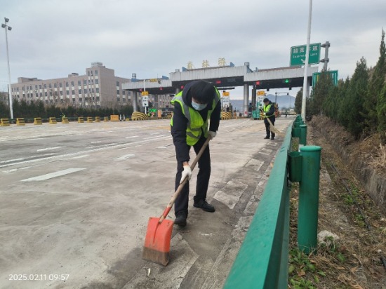 當(dāng)夕陽為咸通高速公路鍍上金邊,“藍(lán)馬甲”志愿者楊紫艷正蹲在收費(fèi)廣場邊溝處,用鑷子夾起縫隙里的煙蒂。這個春節(jié),志愿服務(wù)隊除了完成日常工作,還多了一項特殊的“環(huán)境美容師”任務(wù)——用繡花功夫扮靚春運(yùn)路。