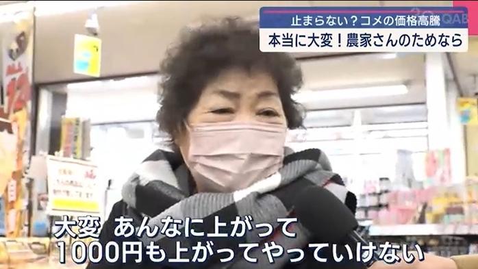 一名日本沖繩縣民眾表示米價上漲“讓人實在吃不消”。圖片來源:日本“琉球朝日放送”報道截圖