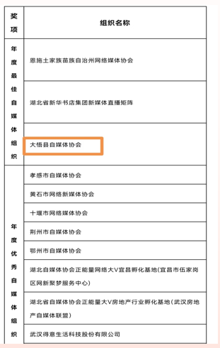 2024年,大悟在中省市主流媒體共刊播新聞稿件14861條,中省兩級媒體共刊播新聞稿件13360條,占比90%,同比增長5%。共上央視62次(累計播出時長242分49秒),其中《新聞聯(lián)播》3次。《人民日報》紙媒6條、新華社130條、《湖北日報》頭版頭條2條、《湖北新聞》47條?!缎⒏腥請蟆奉^版頭條19條、《孝感新聞》160條。全年共在中央省市紙媒刊發(fā)35個頭版頭條,推出33個整版報道,湖北日報客戶端大悟頻道發(fā)布稿件10588條,位居全省前列。大悟自媒體協(xié)會榮獲“2024年湖北省自媒體行業(yè)年度影響力示范協(xié)會”稱號。