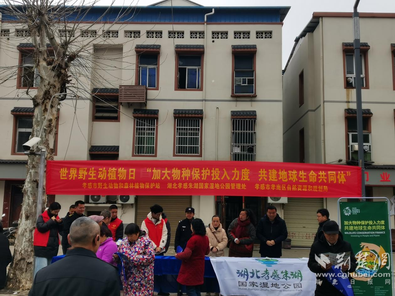 荊楚網(wǎng)(湖北日?qǐng)?bào)網(wǎng))訊(通訊員 陳張川琦)3月4日上午,孝南區(qū)自然資源和規(guī)劃局聯(lián)合市野生動(dòng)物和森林植物保護(hù)站、朱湖國(guó)家濕地公園,以“加大物種保護(hù)投入力度,共建地球生命共同體”為主題,在朱湖集貿(mào)市場(chǎng)集中開(kāi)展了2025年“世界野生動(dòng)植物日”宣傳活動(dòng),動(dòng)員社會(huì)各界共同參與到野生動(dòng)植物保護(hù)事業(yè)中來(lái)。