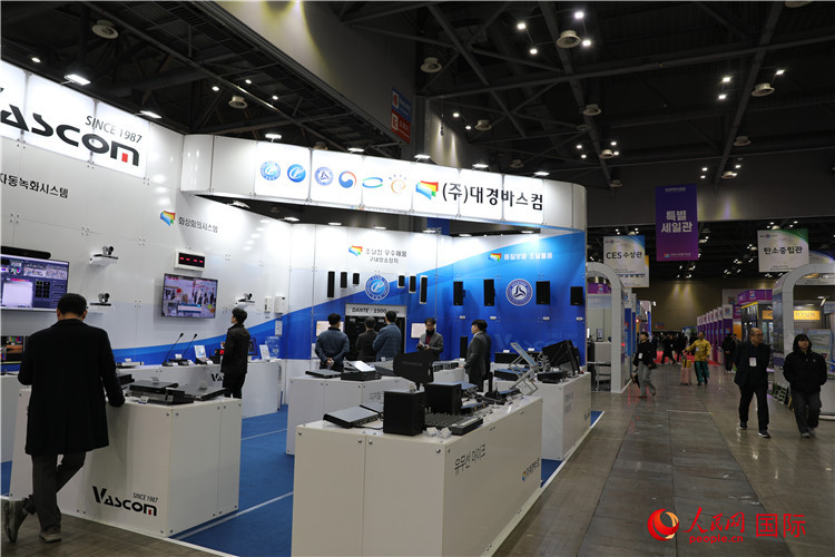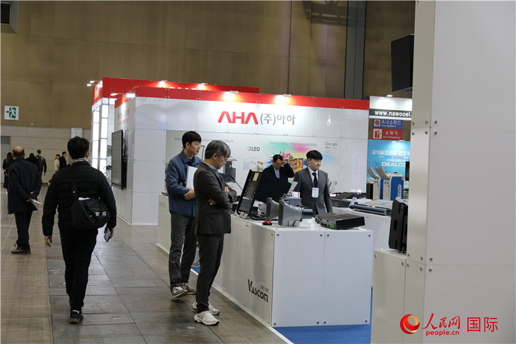 參加“韓國(guó)國(guó)家集市博覽會(huì)”的企業(yè)展臺(tái)。人民網(wǎng)記者 莽九晨攝