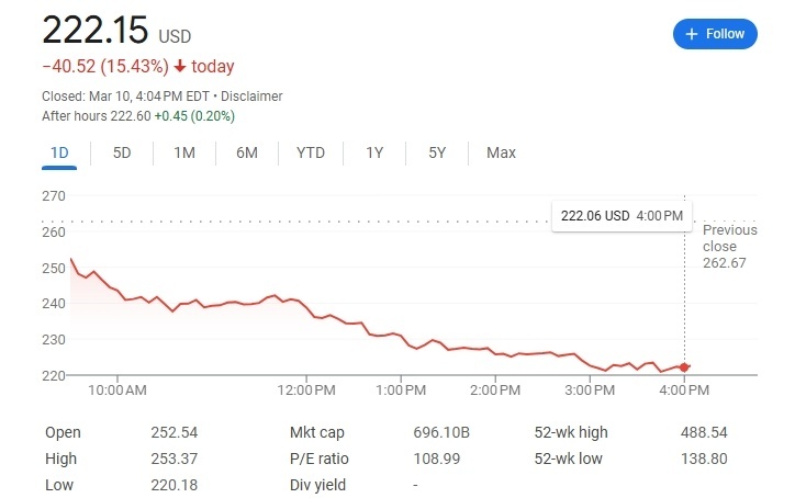 △截至美東時間10日收盤,特斯拉股價跌至每股222.06美元,當(dāng)日跌幅達(dá)15.43%。