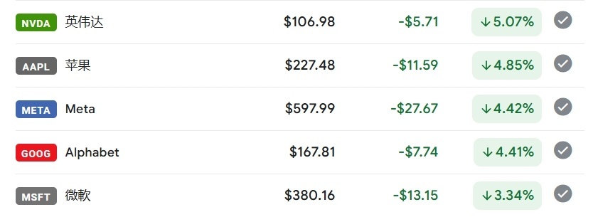 △10日收盤時,英偉達(dá)、蘋果、Meta、谷歌和微軟股價均大幅下跌。