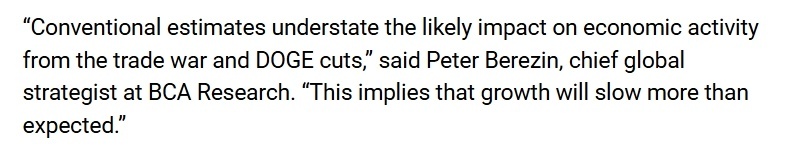 彼得·博瑞辛在10日公布的報告中表示,貿(mào)易戰(zhàn)和美國政府效率部的行動將造成的影響還未充分顯現(xiàn),經(jīng)濟(jì)增長極有可能還將進(jìn)一步放緩。