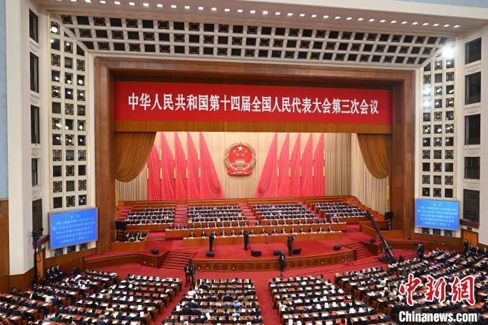 3月11日,十四屆全國人大三次會議在北京人民大會堂舉行閉幕會?!≈行律缬浾?田雨昊 攝