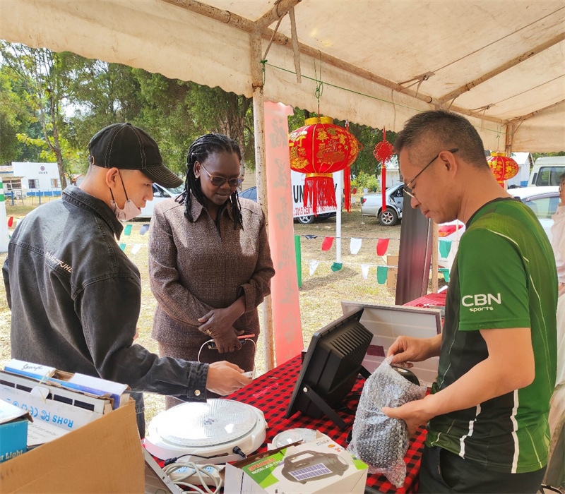 | 中企展臺展出綠色能源產(chǎn)品。莫伊大學(xué)孔子學(xué)院供圖 |