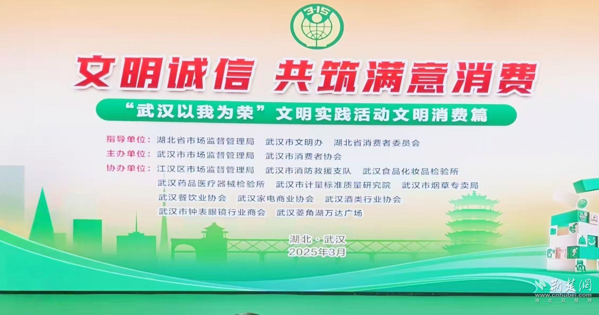 荊楚網(wǎng)(湖北日報網(wǎng))訊(記者 何婧 通訊員 趙袁 蘭莉)今年“3·15”是第43個國際消費者權(quán)益日。3月12日,武漢市市場監(jiān)管局、武漢市消費者協(xié)會在江漢區(qū)菱角湖萬達廣場啟動“文明誠信 共筑滿意消費”“武漢以我為榮”文明實踐活動文明消費篇,進一步倡導(dǎo)市民文明理性消費,維護消費者合法權(quán)益。