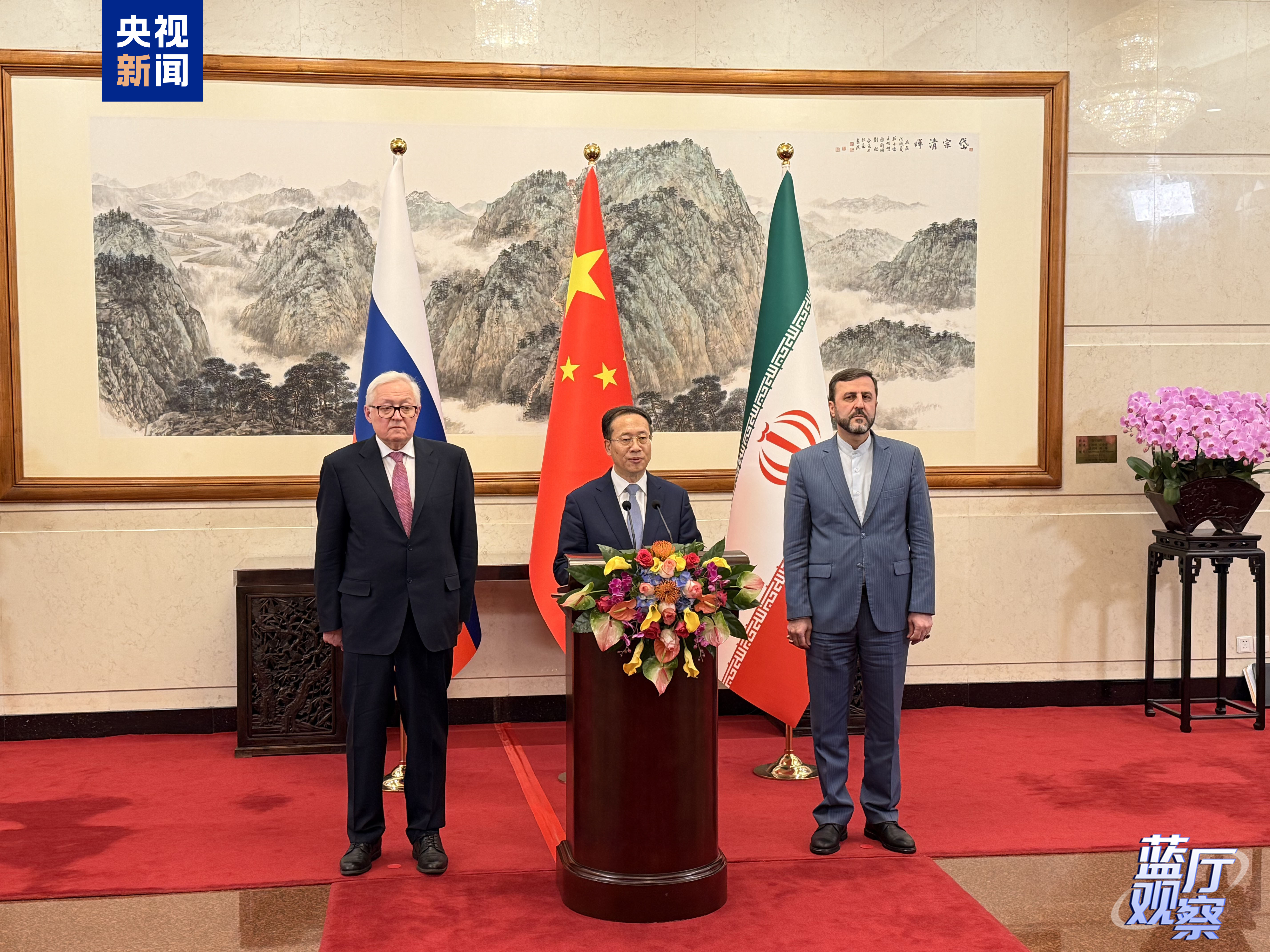 今天(14日)上午,中方舉行伊朗核問題中俄伊北京會(huì)晤。外交部副部長(zhǎng)馬朝旭在會(huì)晤結(jié)束后的記者會(huì)上表示: