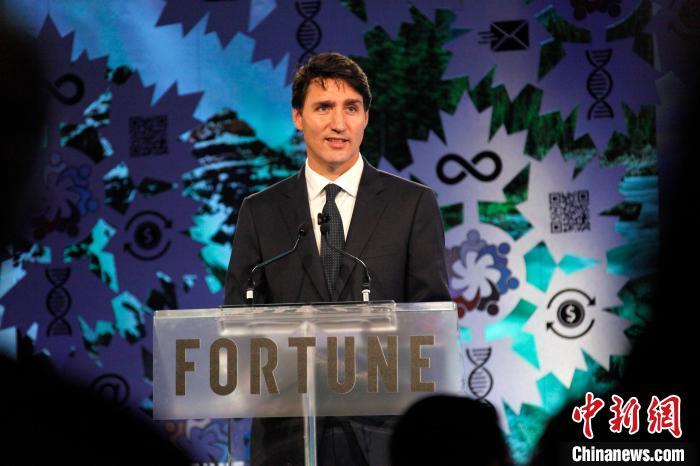 資料圖為當(dāng)?shù)貢r間2018年10月15日,時任加拿大總理特魯多在多倫多出席《財富》全球論壇開幕式并致辭。中新社記者 余瑞冬 攝