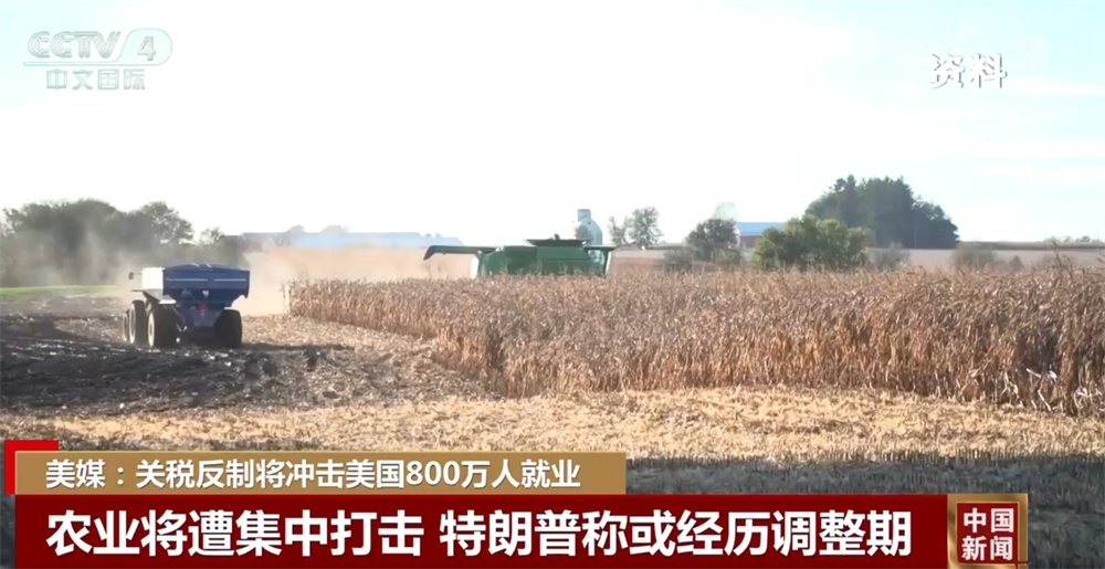 央視網(wǎng)消息:美國《紐約時報》日前發(fā)表文章稱,全球多國對美反制性關(guān)稅措施將影響美國近800萬人就業(yè),其中美國農(nóng)民將受到嚴(yán)重沖擊。