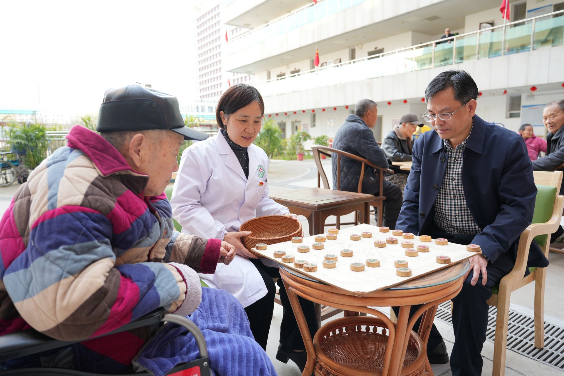 荊楚網(wǎng)(湖北日報網(wǎng))訊(通訊員劉惠林)3月23日上午,孝感市第一人民醫(yī)院愛心護(hù)理院活動室,副院長阮建中正與一位老人下著象棋。棋桌旁,醫(yī)護(hù)人員和志愿者忙著給老人端茶送水,場面溫馨而歡樂。