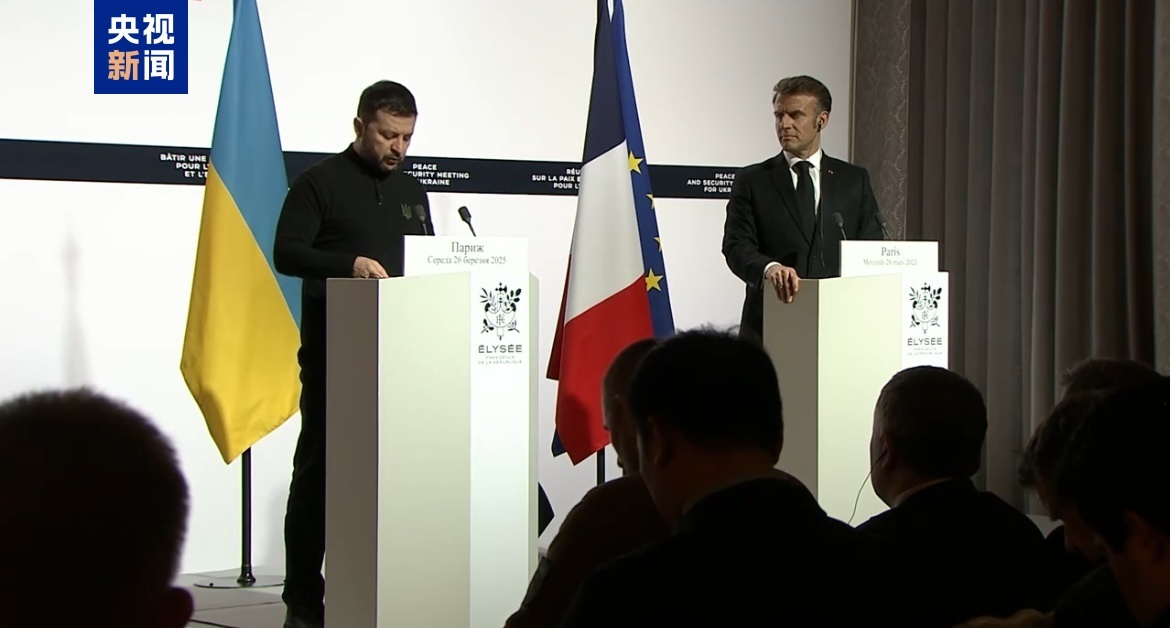 當?shù)貢r間3月26日,法國總統(tǒng)馬克龍與烏克蘭總統(tǒng)澤連斯基在愛麗舍宮會面后召開聯(lián)合新聞發(fā)布會。