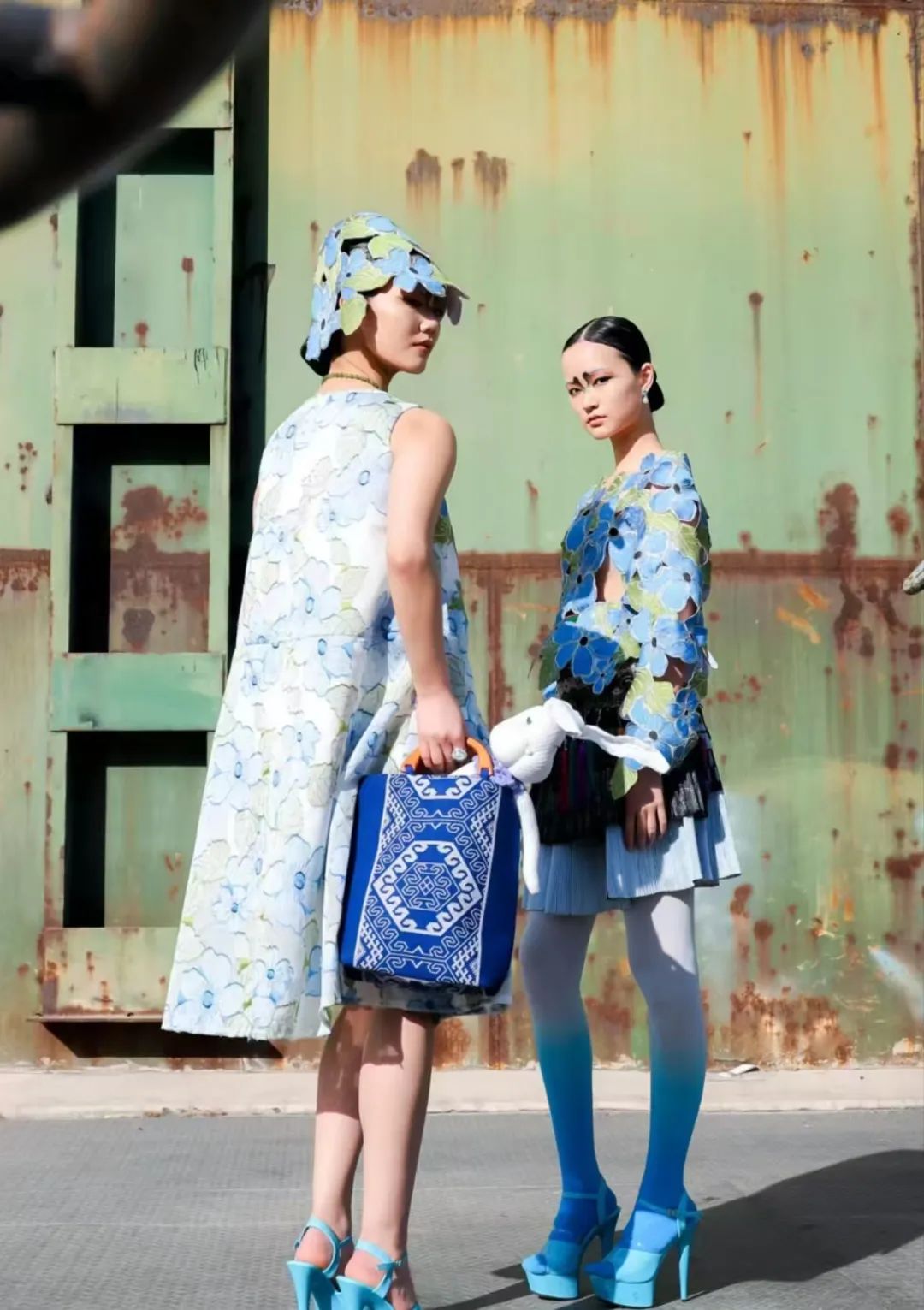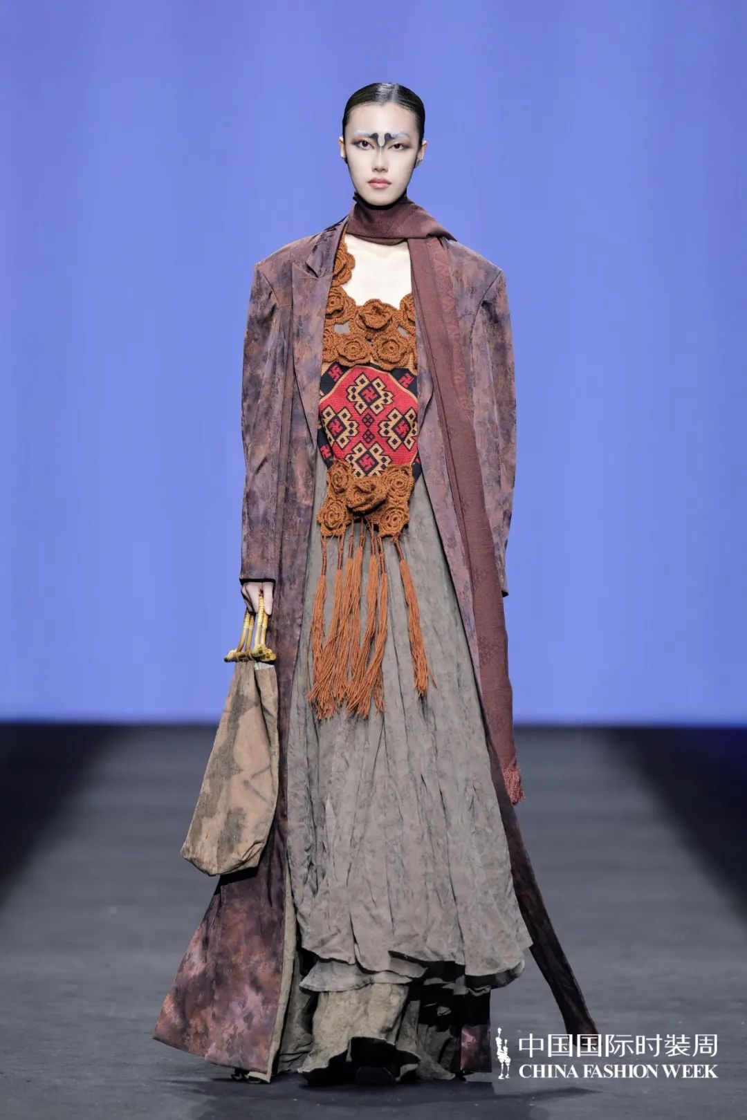 在本次時裝周上,周瓊選取西蘭卡普中的經典圖案,如雙陽雀、鳳穿牡丹、四十八勾等,并通過現(xiàn)代剪裁手法和大膽的色彩碰撞,賦予了古老織錦全新的生命力。