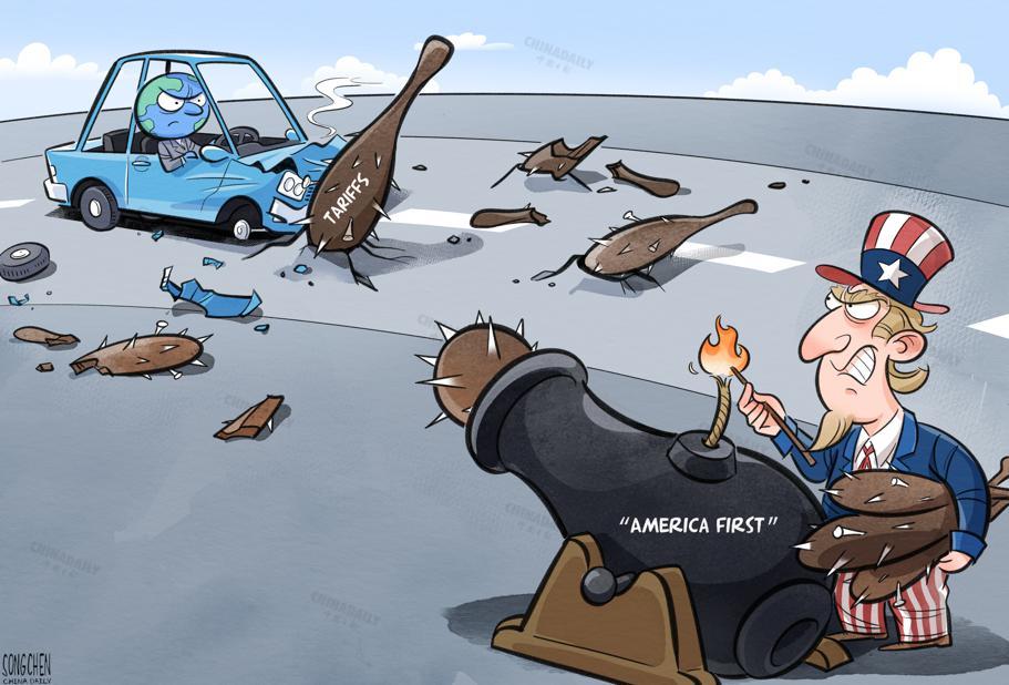 美國關(guān)稅政策恐將拖累全球經(jīng)濟(jì)。(作者:中國日?qǐng)?bào) 李旻)