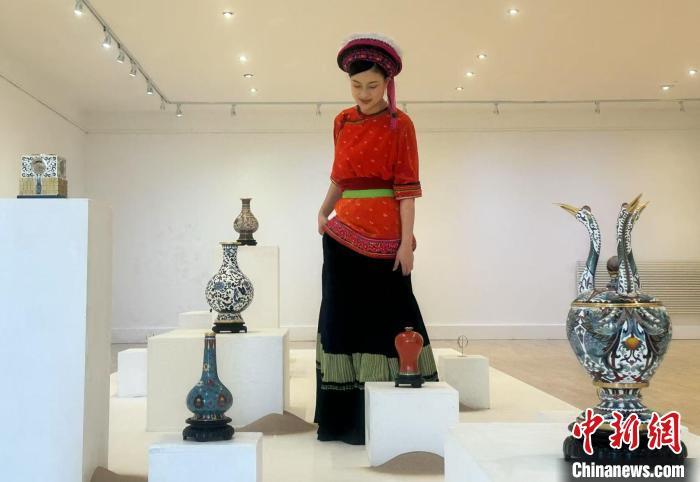 據(jù)介紹,阿紫香是一位中國白族藝術家,師從工藝美術大師霍鐵輝,專注于景泰藍、雕塑、油畫等多媒介創(chuàng)作。她的作品植根于中國傳統(tǒng)文化,尤其是景泰藍這一工藝。她并非停留于傳統(tǒng)的復刻,而是在當代語境中探索新的表達方式。展覽現(xiàn)場,阿紫香為在場人士講述參展作品背后的故事,并現(xiàn)場展示景泰藍制造工藝流程,