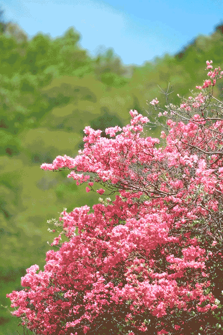 武漢市文化和旅游局,贊1165“人間仙境云霧山,層巒疊嶂映紅天”,木蘭云霧山的杜鵑花以映山紅為主,從3月中旬開始,萬畝野生紅杜鵑競相綻放,春風(fēng)吹過,此起彼伏,如霞似火,嫣然一片杜鵑花的海洋。