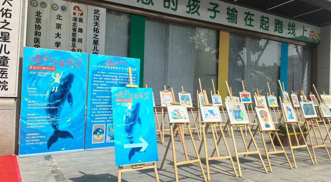 2025年4月2日,在第18個(gè)世界孤獨(dú)癥關(guān)注日當(dāng)天,“星星與江豚的對(duì)話”繪畫(huà)巡展于武漢西北湖公園畔溫暖開(kāi)展,30幅由孤獨(dú)癥兒童創(chuàng)作的畫(huà)作吸引數(shù)百名市民駐足。