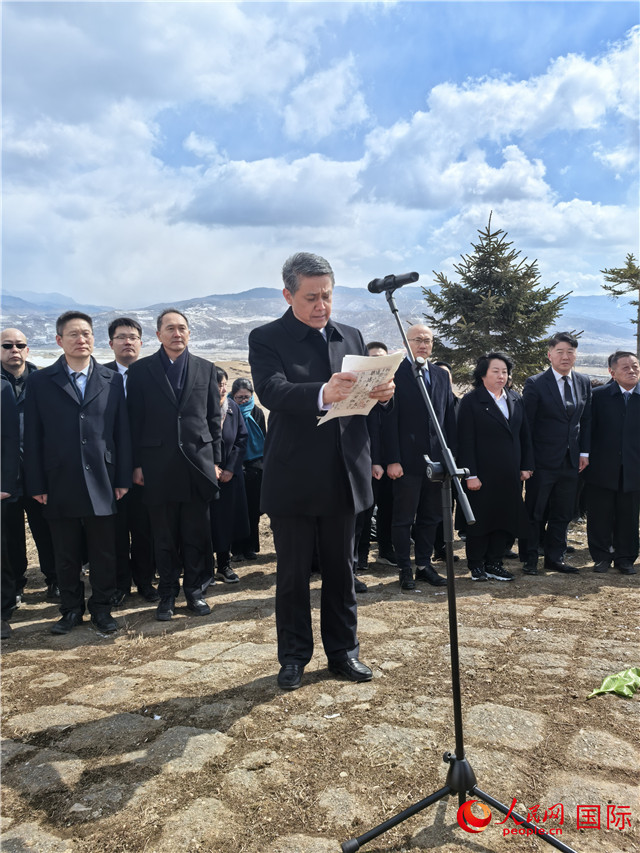 今年是中國人民志愿軍抗美援朝出國作戰(zhàn)75周年。3月30日,在清明節(jié)即將到來之際,中國駐朝鮮大使王亞軍率中國駐朝鮮使館、駐清津總領(lǐng)館全體館員、在朝中資機(jī)構(gòu)和媒體代表、旅朝華僑代表等近60人趕赴咸鏡南道長津郡,祭掃長津邑、新興里中國人民志愿軍烈士陵園,向長津郡下碣隅里楊根思烈士紀(jì)念碑敬獻(xiàn)花籃,祭奠緬懷在長津湖戰(zhàn)役中犧牲的中國人民志愿軍英烈。