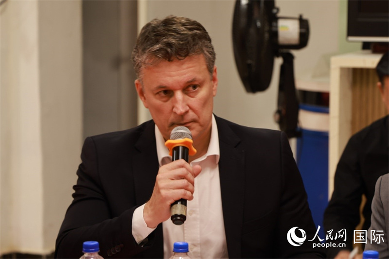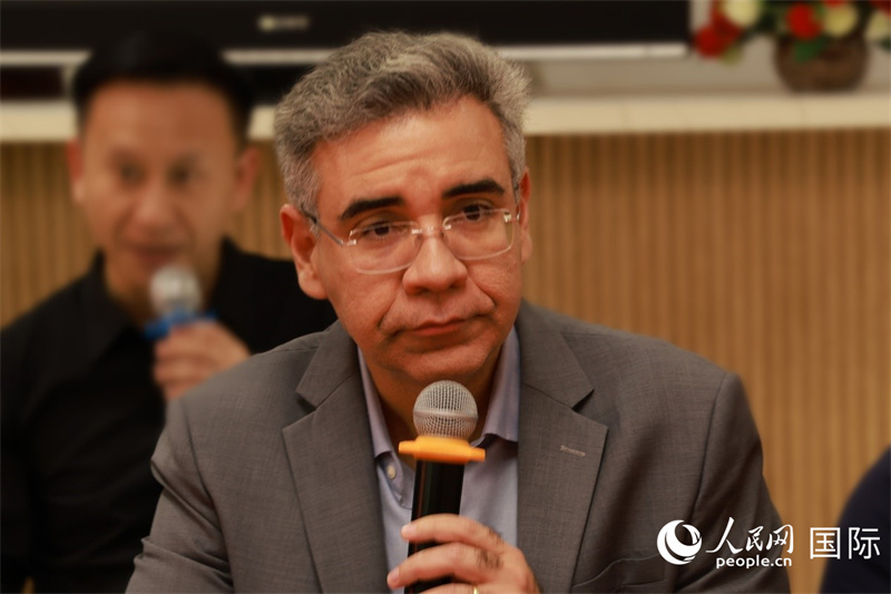 巴西弗魯米嫩塞聯(lián)邦大學(xué)教授、中國問題專家埃萬德羅·卡瓦略在座談會上致辭。人民網(wǎng)記者 陳海琪攝