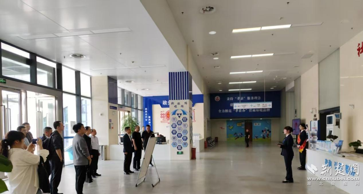 劉建一行詳細了解了大廳功能布局、窗口設置和智能化設備運行情況,重點觀摩了“一窗通辦”服務流程、24小時自助服務區(qū)和智慧政務系統(tǒng)應用場景,切身感受了孝感市在推進政務服務標準化、規(guī)范化、便利化建設方面取得的成效。