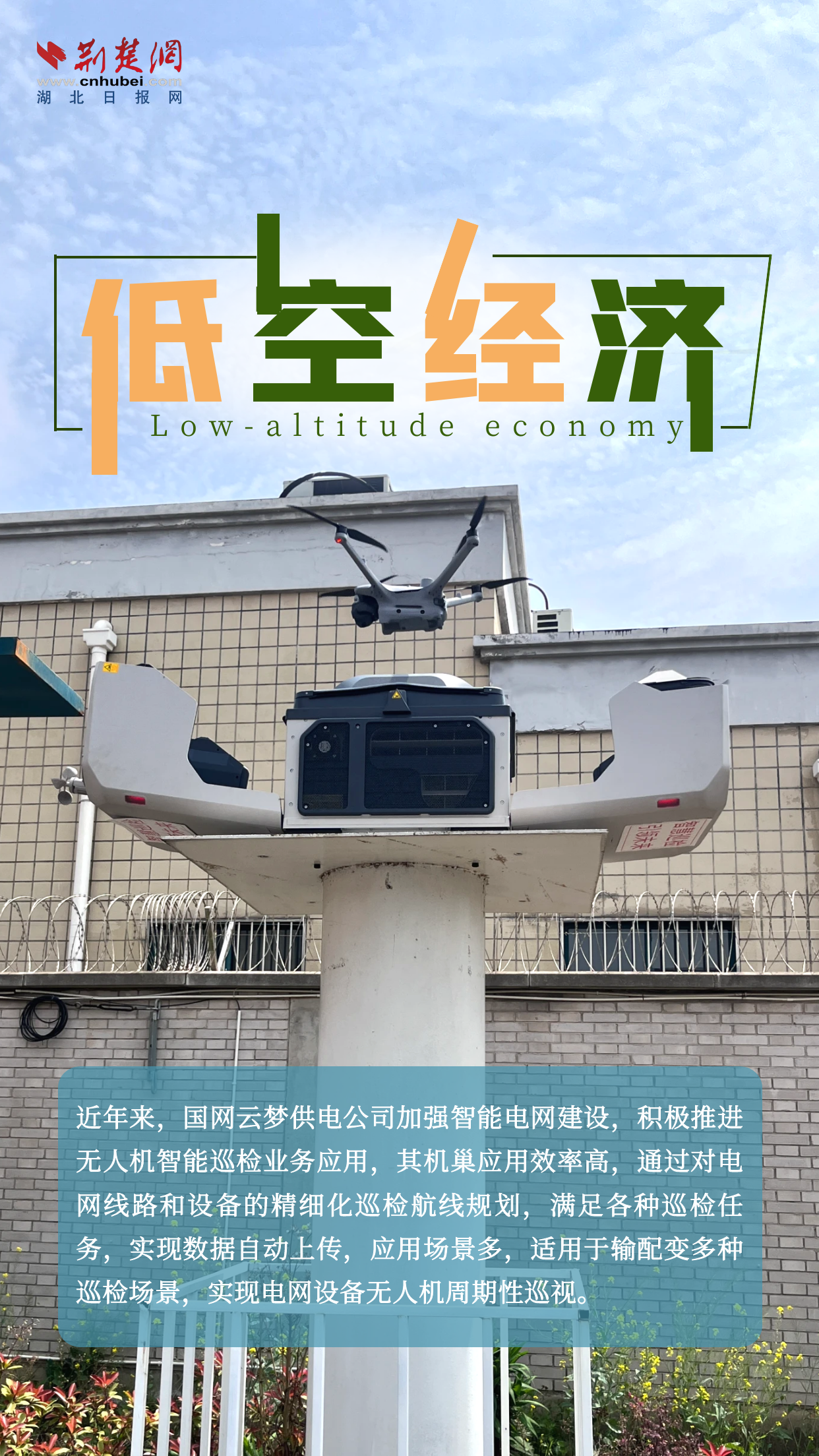 荊楚網(wǎng)(湖北日報網(wǎng))訊(記者楊卓玉 通訊員聶杰杰)低空經(jīng)濟(jì)是新質(zhì)生產(chǎn)力的典型代表,是多產(chǎn)業(yè)融合的綜合性經(jīng)濟(jì)形態(tài),是蘊藏著巨大市場潛力的“新藍(lán)?!?。4月9日,記者走進(jìn)云夢縣清明河鄉(xiāng)虹光社區(qū)千畝麥田、胡金店鎮(zhèn)盛砦村、國網(wǎng)云夢縣供電公司云谷零計劃停電示范區(qū),實地感受低空經(jīng)濟(jì)在農(nóng)業(yè)、文旅等領(lǐng)域的智能應(yīng)用場景,探尋低空經(jīng)濟(jì)與鄉(xiāng)村發(fā)展的融合路徑;領(lǐng)略新型電力設(shè)施為經(jīng)濟(jì)發(fā)展提供的能源保障,助力云夢縣打造高質(zhì)量發(fā)展新的增長極。