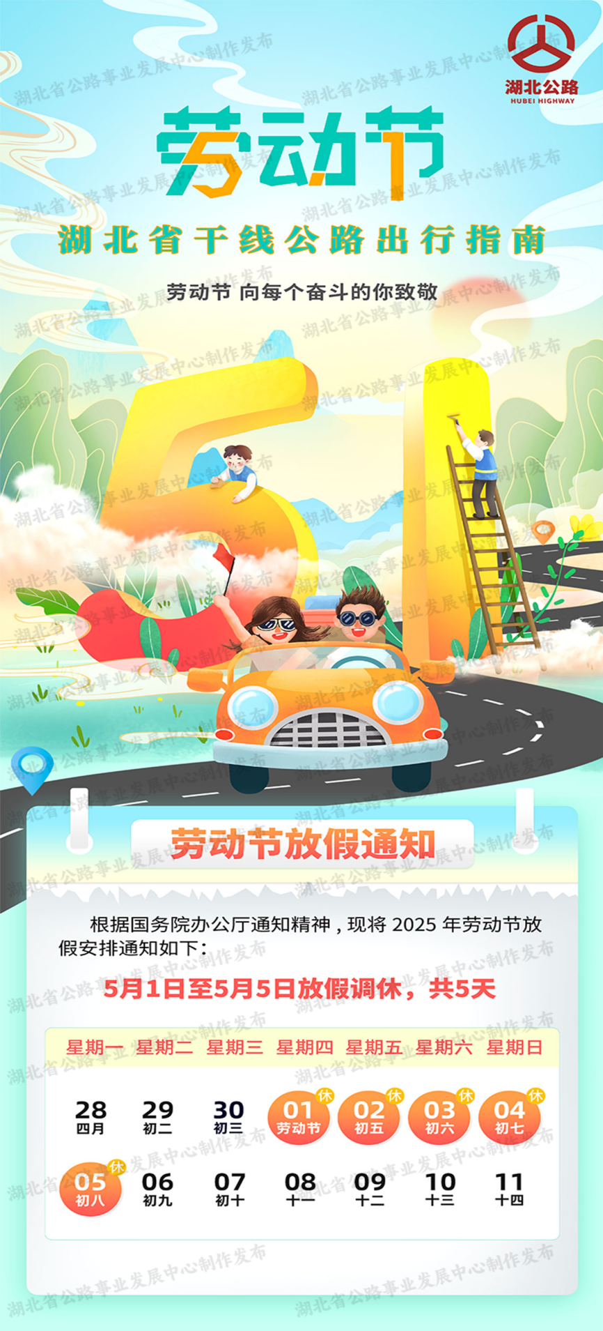 湖北省公路事業(yè)發(fā)展中心根據(jù)歷年來勞動節(jié)假期全省公路網(wǎng)運行監(jiān)測情況,提前分析研判2025年勞動節(jié)假期路網(wǎng)運行態(tài)勢,預(yù)計勞動節(jié)假期期間公路網(wǎng)流量較日常漲幅明顯,出行需求以踏青出游、探親訪友等中短途自駕出行為主,省內(nèi)各市州周邊路段和通往知名景區(qū)路段的交通流量大幅增長,武漢市及其他重點城市周邊路段易出現(xiàn)擁堵緩行。現(xiàn)編制《2025年勞動節(jié)假期湖北省干線公路出行指南》,為公眾平安便捷出行提供參考。