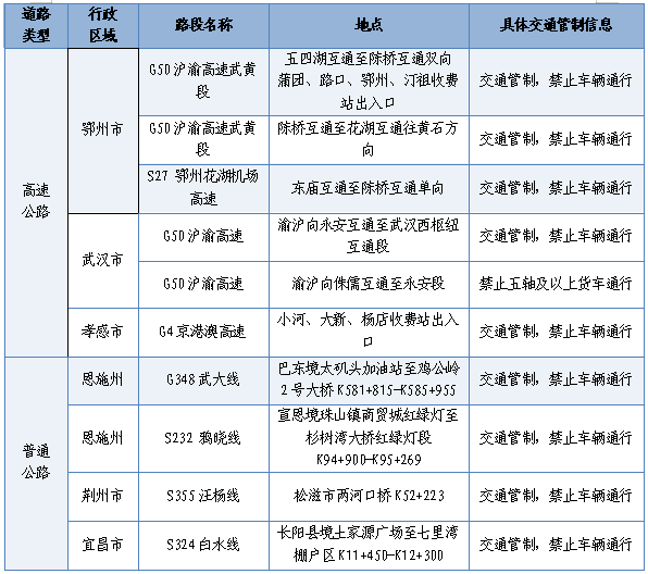 高速公路易緩行路段有:G50滬渝高速武穴至蘄春段、鄂州服務(wù)區(qū)至五四湖互通段、后湖至丫角段、北河至仙桃段、賀家坪至榔坪段;G42滬蓉高速東西湖至漢川段、應(yīng)城至天門北段;G70福銀高速孝感北至云夢段、土關(guān)埡至武當(dāng)山段;S17硚孝高速永豐至西湖段等。