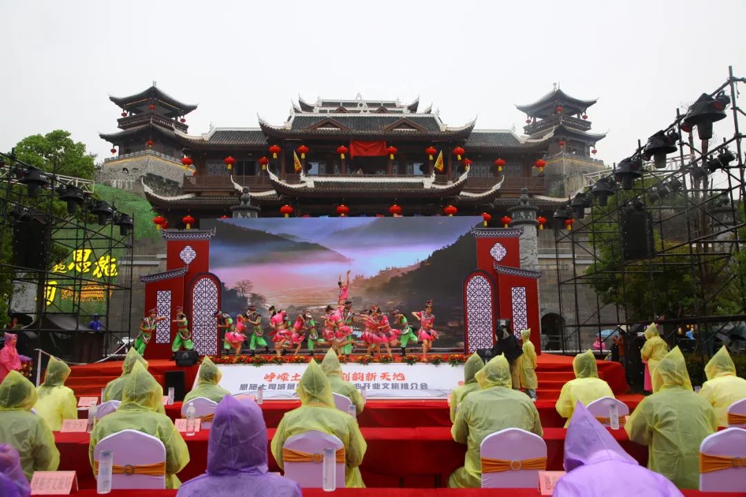 4月29日,恩施土司城南門游客中心隆重舉行開門儀式暨文旅推介會活動,現(xiàn)場人潮涌動,鑼鼓喧天,民族歌舞激情上演,民俗活動精彩不斷。嘉賓、游客齊聚南門廣場,共同見證土司城景區(qū)綻放新顏,千年遺韻煥華章。