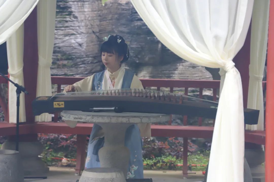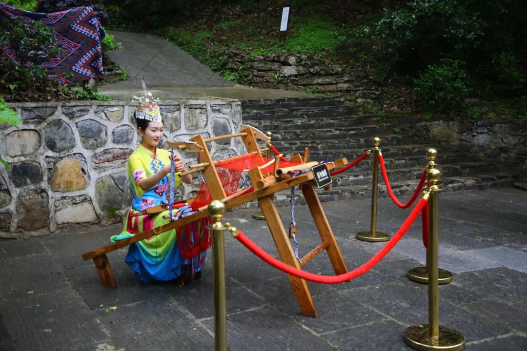 曲徑通幽的花園內設有三個常態(tài)表演點,游客可以在石泉溪流旁近距離觀看土家織錦的技藝,在群芳亭下欣賞古色古香的錚錚琴音,往前行進可以參與互動土家婚俗表演拋繡球,沉浸式感受特色土苗文化。