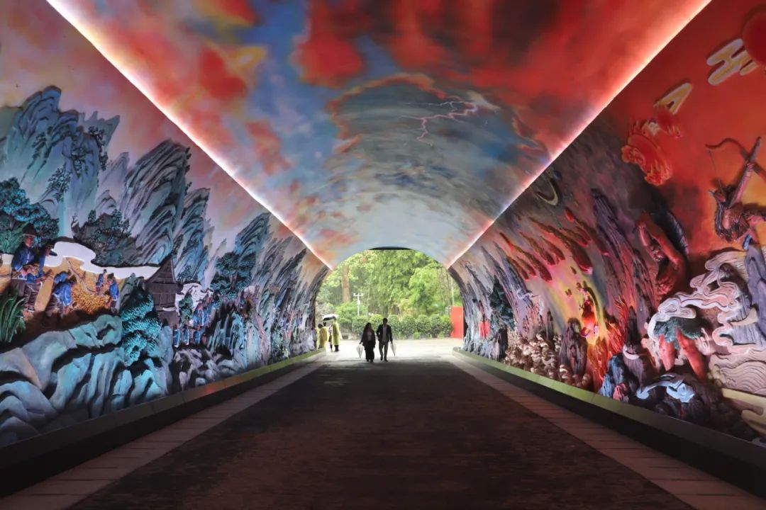 穿過大廳,經南門隧道到百花園。百花園內,海棠、櫻花、杜鵑等花卉爭相開放,奇石、假山、疊瀑景觀映入眼簾,園內形成“月月有花開,四季各不同”的景觀,引得游客駐足觀賞。