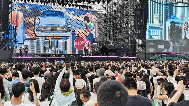 降臨,華燈初上,當(dāng)舞臺(tái)燈光如星河傾瀉,黃霄云以一首《星辰大?!穼⒎諊葡蚋叱??!艾F(xiàn)場(chǎng)的氛圍簡(jiǎn)直嗨到爆!我這次就是沖著她來(lái)的,她的歌聲太有穿透力了,也在一直給我力量!”來(lái)自孝感的樂迷孫女士難掩興奮之情。