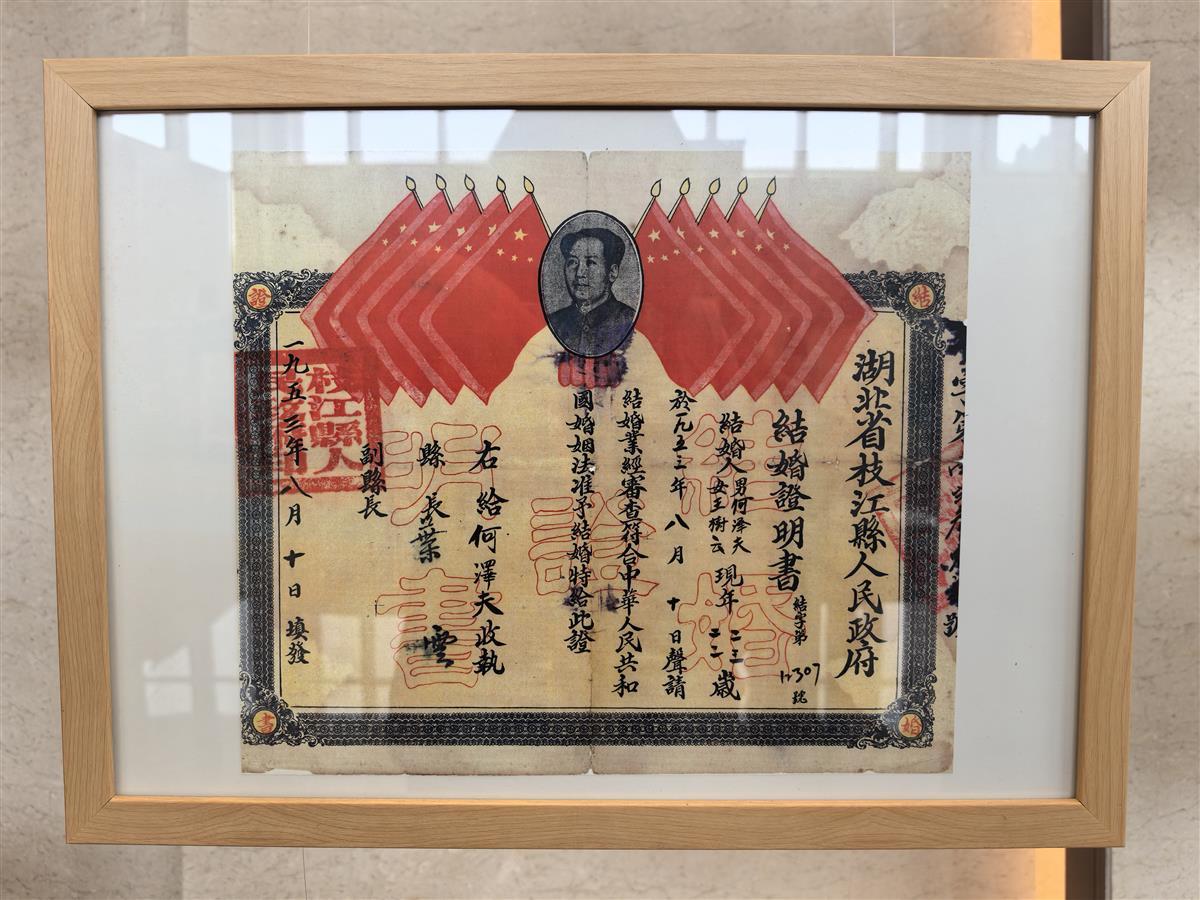 執(zhí)子之手,與子偕老。結(jié)婚證,一個小小的證件是有情人愛情的見證。5月8日,在家庭建設(shè)主題展示全國示范活動暨第二屆湖北省家庭文化節(jié)活動上,家庭文化展示區(qū)內(nèi),一組各個年代的結(jié)婚證引起了大家的好奇,紛紛駐足觀看。