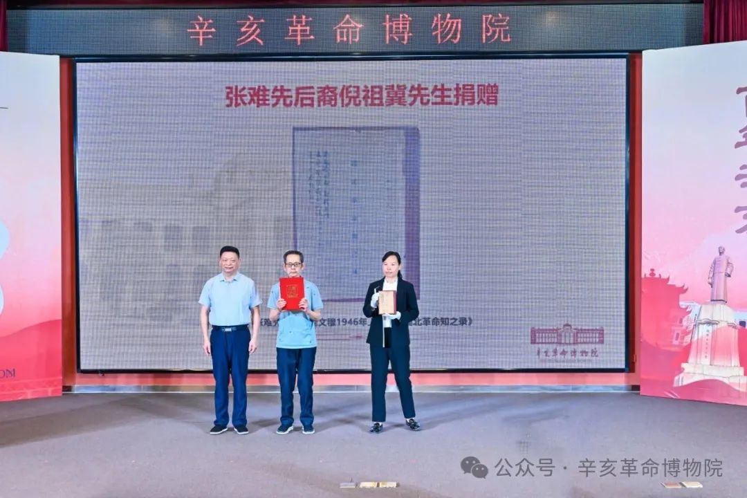 魏德勛院長向張難先外孫倪祖冀先生頒發(fā)收藏證書