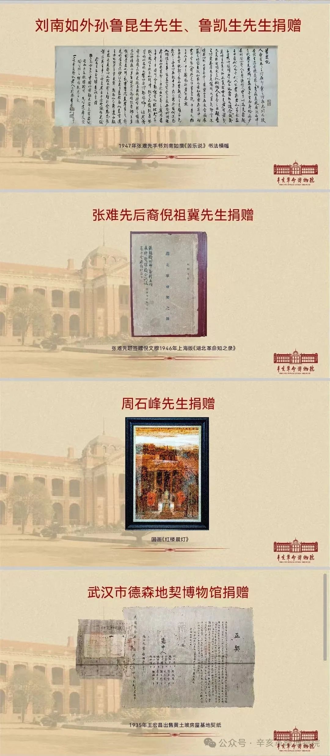 去年下半年以來,在辛亥后裔及社會各界人士的關(guān)心和支持下,我院已接收文物捐贈多次,涉及文物資料10余件(套)。其中,劉南如外孫魯昆生先生、魯凱生先生捐贈“1947年張難先手書劉南如撰《苦樂說》書法橫幅”1件(套);張難先外孫倪祖冀先生捐贈“張難先題簽贈倪文穆1946年上海版《湖北革命知之錄》”1件(套);知名畫家周石峰先生捐贈其本人創(chuàng)作的國畫作品《紅樓晨燈》1件(套),武漢市德森地契博物館捐贈“首義路149號地契”1件(套)。這些捐贈進一步豐富了我院藏品體系,為我院各項業(yè)務(wù)工作進一步高質(zhì)量發(fā)展奠定了堅實基礎(chǔ)。
