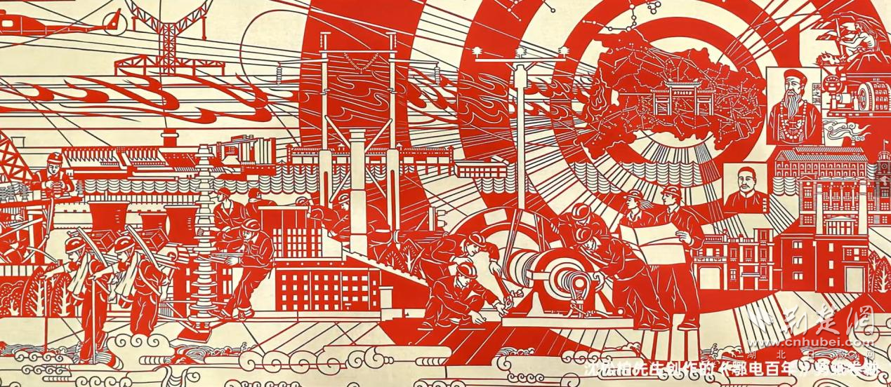 2023年,沈松柏在傳統(tǒng)剪紙手法“金紙刻制、彩紙襯色”的基礎(chǔ)上,通過更為精細(xì)的雕刻,創(chuàng)作出展現(xiàn)湖北電力百年發(fā)展歷程的剪紙長卷《百年鄂電 光耀荊楚》。從1893年湖北點(diǎn)亮的第一盞電燈到三峽水電站的建設(shè),從特高壓變電站到新型電力系統(tǒng)建設(shè),都在這幅6.3米的剪紙長卷上鋪陳開來?!白鳛橐幻娋W(wǎng)企業(yè)員工,通過剪紙這個(gè)載體,來表現(xiàn)電力發(fā)展、綠色電力建設(shè)一百年,我覺得非常光榮、非常自豪?!?025年,沈松柏憑借在剪紙藝術(shù)領(lǐng)域的深厚造詣與長期以來的突出貢獻(xiàn),入選“鄂電銀輝”首批文化先鋒類人才。沈松柏表示,以刀為筆雕刻時(shí)代風(fēng)貌,是非遺傳承人的使命,也是驕傲。