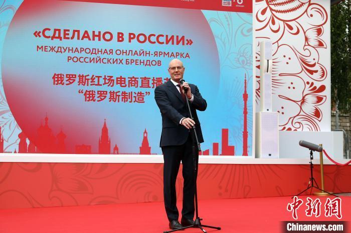 當?shù)貢r間5月17日,俄羅斯“紅場電商直播節(jié)”在莫斯科紅場旁的扎里亞季耶公園舉行。圖為俄羅斯政府副總理切爾內申科出席活動啟動儀式并致辭。中新社記者 田冰 攝