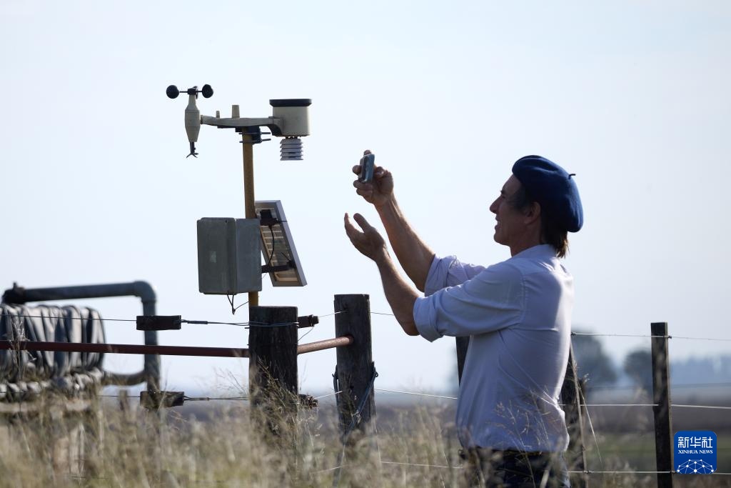 5月14日,埃塞基耶爾·內(nèi)爾維在阿根廷潘帕斯草原萊因迪亞納牧場觀察風向。新華社記者 孟鼎博 攝
