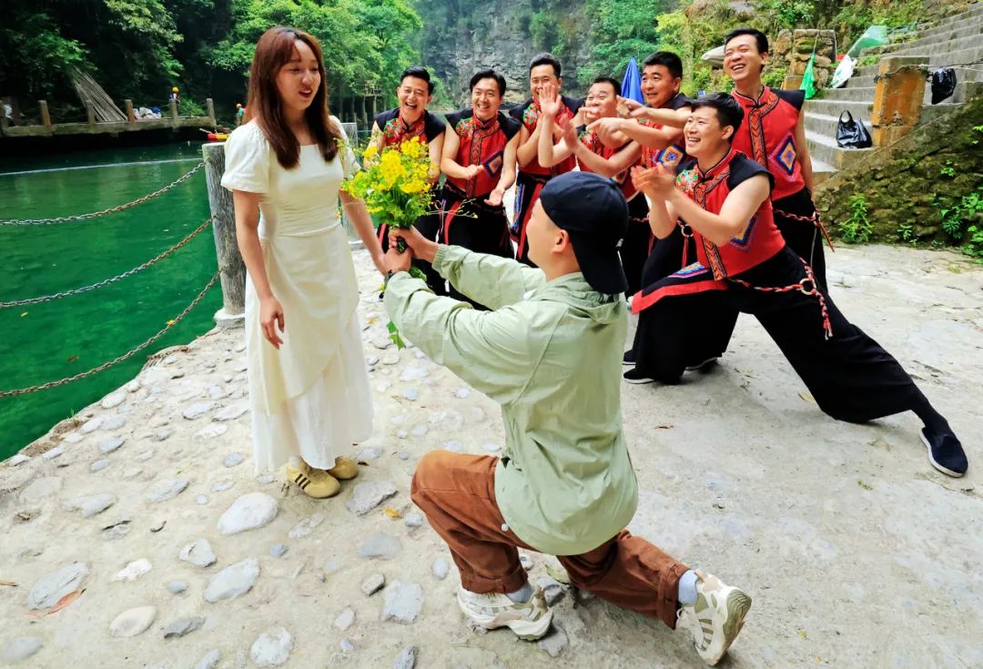 就在這個中國旅游值得紀念的日子里,開展非遺進景區(qū)的“土家稀奇哥”在景區(qū)奉獻了各項精彩的非遺表演,還與游客展開了精彩的互動。