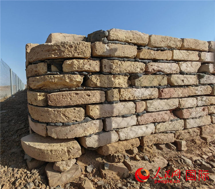 烏爾古城建筑的墻基。黑色部分為瀝青。人民網(wǎng)記者 管克江攝
