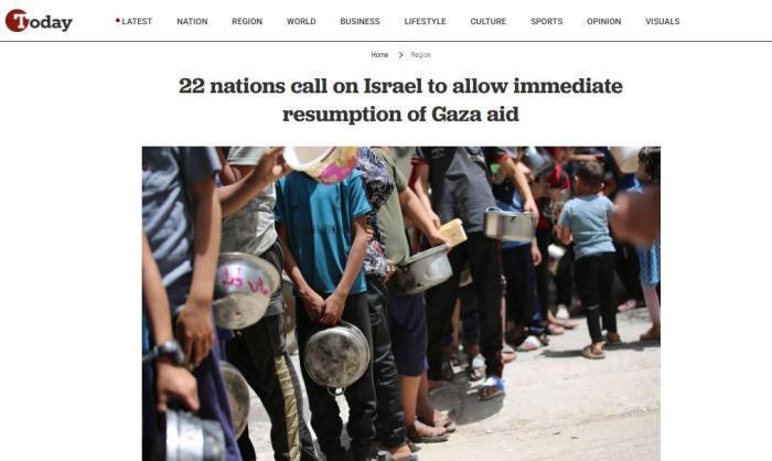 中新網(wǎng)5月21日電 據(jù)土耳其媒體20日?qǐng)?bào)道,包括英國(guó)、法國(guó)、德國(guó)在內(nèi)等22個(gè)國(guó)家聯(lián)合呼吁以色列立即允許全面恢復(fù)對(duì)加沙地帶的人道主義援助,加沙地帶的居民面臨著嚴(yán)重的食品、藥品和生活必需品短缺。