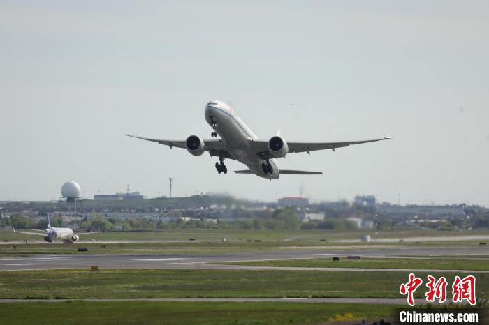 當?shù)貢r間5月20日,國航CA994航班班機從多倫多皮爾遜國際機場起飛,前往北京?!≈行律缬浾?余瑞冬 攝