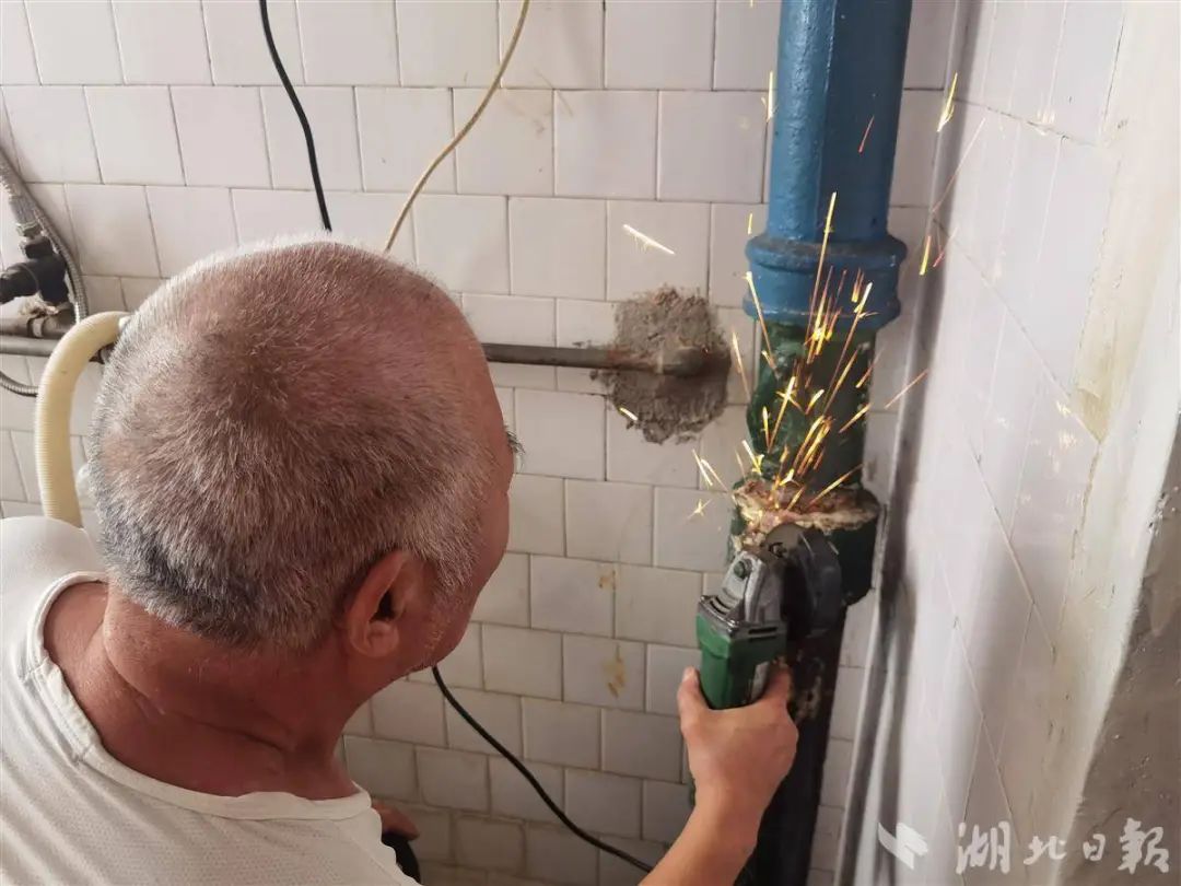 △周重書(shū)為居民維修水管。圖源湖北日?qǐng)?bào)。