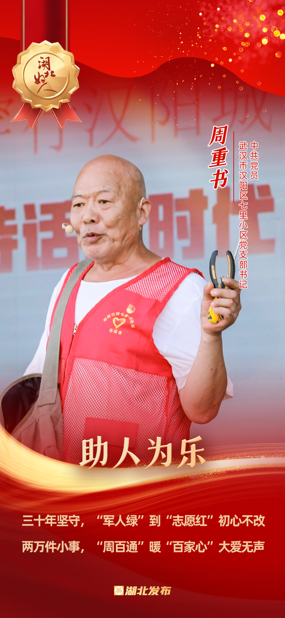 1973年在部隊(duì)入黨,1976年轉(zhuǎn)業(yè)到武漢家具廠,2009年被選為社區(qū)黨委委員,2023年榮獲“武漢楷?!狈Q號(hào)……今年75歲的周重書(shū)是一名退伍老黨員,在部隊(duì)曾兩次榮立三等功,在工廠也多次被評(píng)為先進(jìn)工作者和模范標(biāo)兵。
