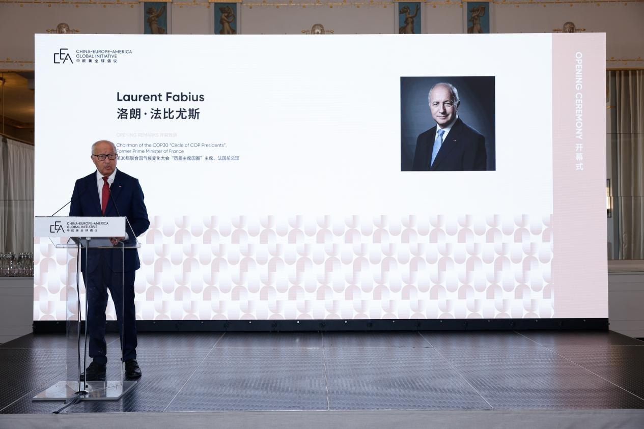 中國駐法國大使館公使陳力、法國前總理洛朗·法比尤斯出席論壇并致辭。中國外文局副局長、當(dāng)代中國與世界研究院院長于運(yùn)全,北京市委宣傳部副部長、市政府新聞辦主任余俊生作視頻致辭,中歐美全球倡議發(fā)起人高大偉主持開幕式。
