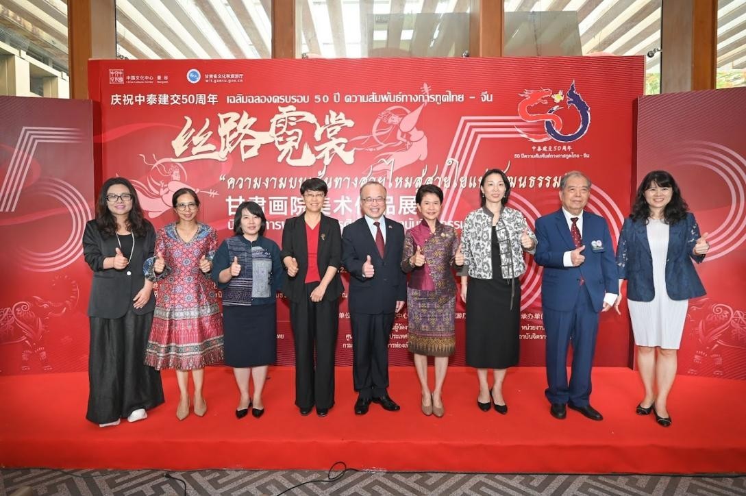 人民網(wǎng)曼谷5月24日電 (記者簡承淵)當(dāng)?shù)貢r(shí)間23日,“絲路霓裳”甘肅畫院美術(shù)作品展在曼谷中國文化中心隆重開幕。中國駐泰國大使館公使吳志武,泰國文化促進(jìn)司代理司長麗畢嘉,甘肅省文化和旅游廳副廳長龔佳佳,以及泰國藝術(shù)界知名人士、當(dāng)?shù)匚幕瘷C(jī)構(gòu)代表等嘉賓以及愛好中國傳統(tǒng)文化的泰國觀眾約150人出席活動(dòng)。