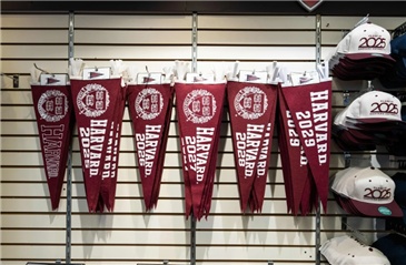 △哈佛大學(xué)商品在馬薩諸塞州劍橋市的一家商店里展示