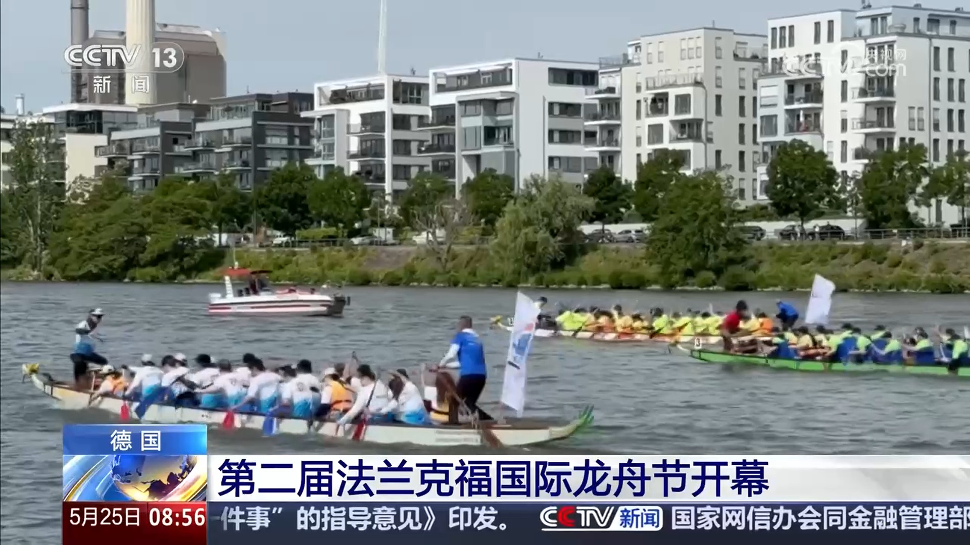 24日,第二屆法蘭克福國際龍舟友誼賽在德國法蘭克福開幕。上午十點,龍舟賽事正式開始,包括湖北荊州隊、法蘭克福本土龍舟隊,以及來自法國、意大利、美國等國的共十八支隊伍、五百余名選手在現(xiàn)場觀眾的助威聲和吶喊聲中你爭我趕,力爭上游。